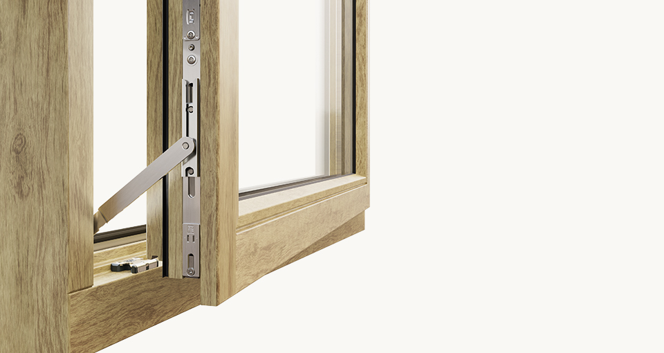 Large windows provide a special feeling of living. But they also require the use of more force when tilting them – especially with low positioned handles, which are designed to be well within reach of everyone. With the TITAN comfort stay we have made an extreme reduction of the force required and made the tilting more convenient and safer. Hence, a hard stop and teetering of the window during opening are prevented. And tilt-closing is effortlessly easy thanks to the power storage spring.